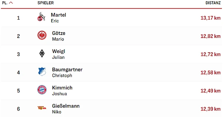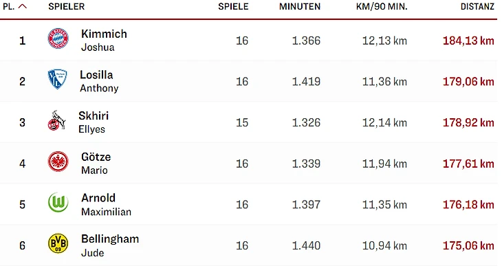 *игрок – кол-во игр – кол-во минут – в среднем км за 90 мин – всего км