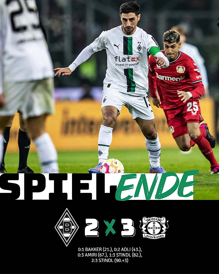 Во втором тайме «аспириновые» так же непринужденно закатили и третий мяч – Амири разыграл изящную стенку с Адли и пробил Омлина. «Боруссии» ответить было нечем и встреча катилась к уверенной победе гостей. Однако в конце встречи вышедший на замену Штиндль нанес два неберущихся удара, чем заставил немного понервничать «Байер», у которого чуть не ускользнула из рук заслуженная победа. Но времени отыграться хозяевам не хватило – 2:3.