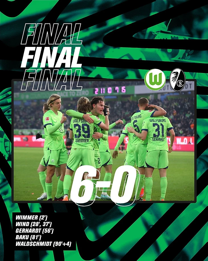 «Вольфсбург» отпраздновал пятую подряд победу в Бундеслиге. Последний раз «волки» проводили такую успешную серию осенью 2014 года. А для «Фрайбурга» это поражение стало самым тяжёлым под руководством Кристиана Штрайха, при нём клуб впервые пропустил шесть голов в матче Бундеслиги.