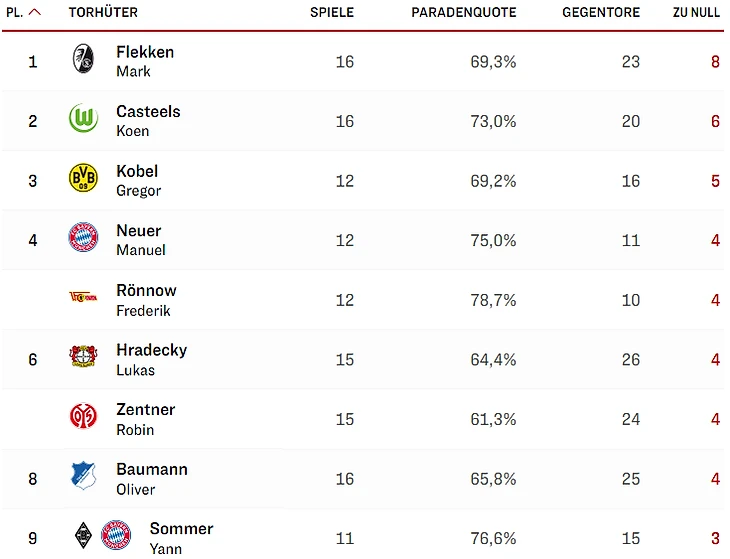 *игрок – кол-во игр – % отраженных ударов – пропущено мячей – матчи на ноль