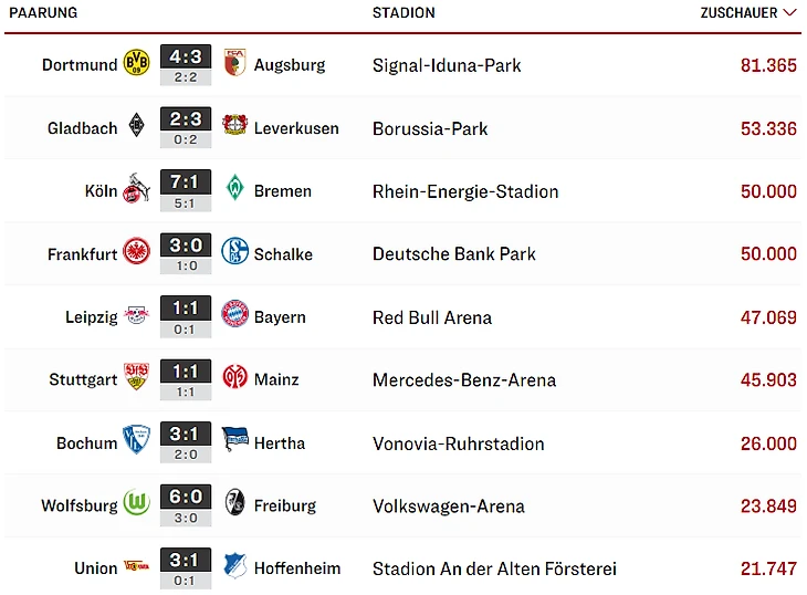 Впервые за более чем 39 лет «Кёльн» забил семь голов в матче Бундеслиги, в последний раз это было в октябре 1983 года против команды из Франкфурта.