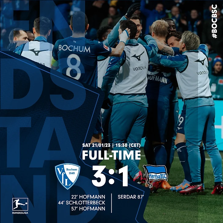 «Бохум» тоже впереди не феерил, но дело свое знал и свои пару моментов использовал – отличились Хофманн и перешедший из Фрайбурга Кевен Шлоттербек. Во втором тайме берлинцы вроде и атаковали, но даже близко не подошли к перелому в игре. Скорее хозяева могли увеличить счет, что они в итоге и сделали усилиями того же Хофманна. Сердар в концовке забил гол престижа, в итоге 3:1, «Бохум» выскочил из зоны вылета, а вот «Герта» продолжает тонуть. Берлинцам остается только надеяться на возвращение в строй игроков атаки и на то, что Сандро Шварцу удастся справиться с ситуацией.