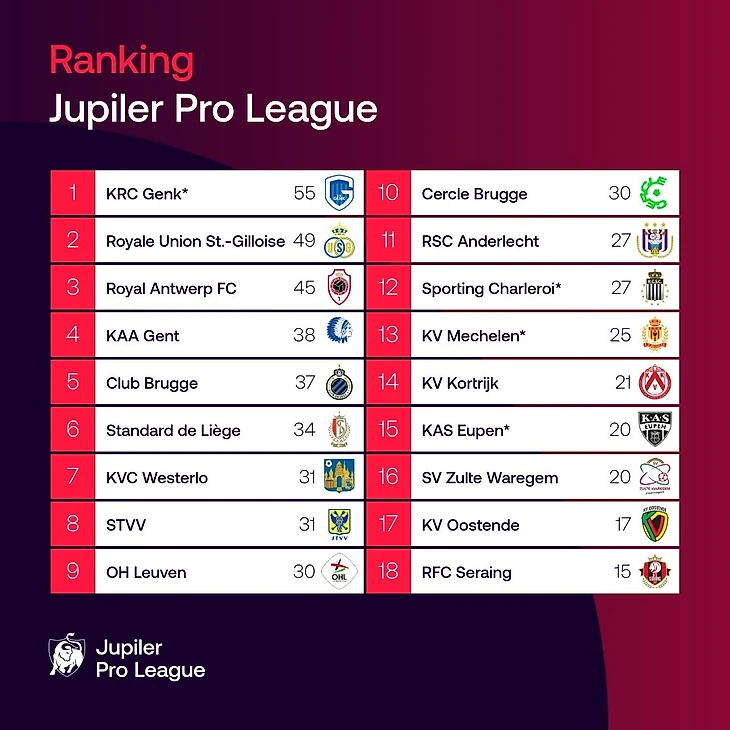 Сегодня в блоге «Про-Лига» – обзор 22-го тура регулярного первенства чемпионата Бельгии. Матчи проходили 21 и 22 января.
