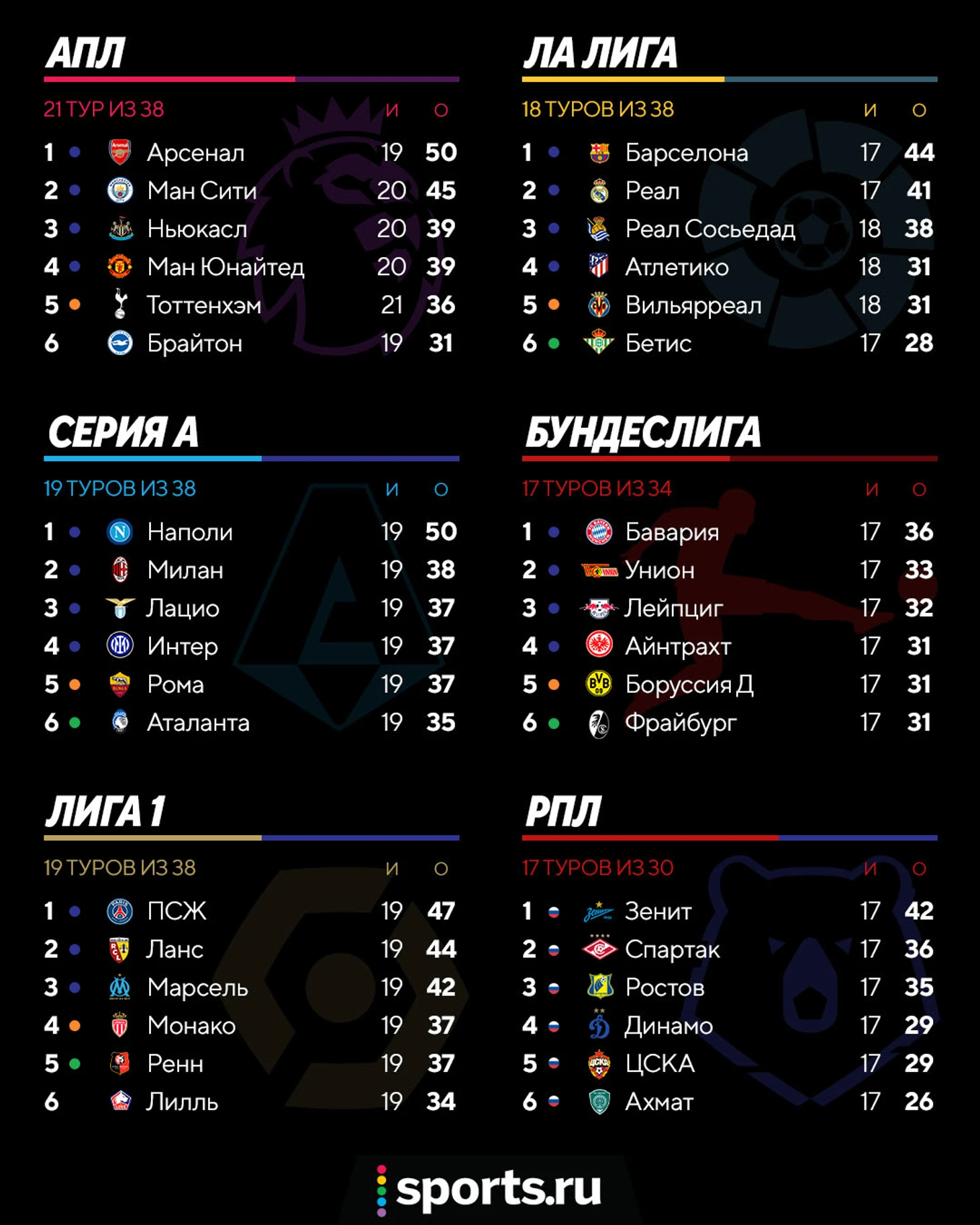 Оцениваем плотность в топ-5 и РПЛ. Космический отрыв «Наполи», непривычное в Германии, «ПСЖ» близко