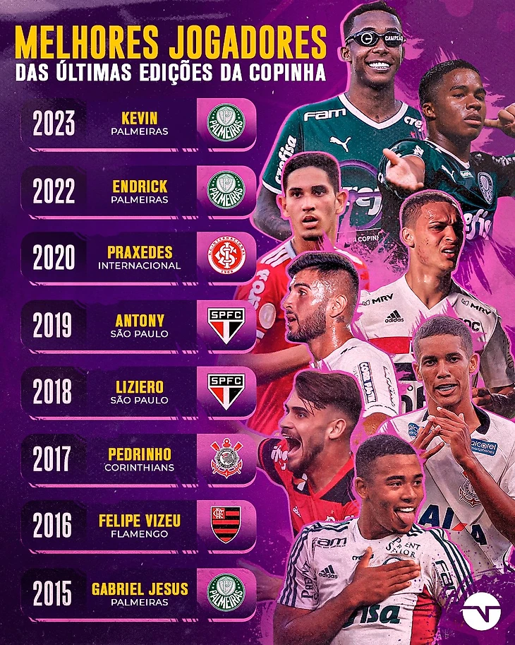 Несмотря на доминирование "Палмейраса" (9 побед в 9 матчах, при разнице мячей 30-4) на Копинье (помимо Кевина ярко сыграл и тот же Педро Лима,19 лет), отмечу и других ярких парней- Адисон (17 лет), Луан Кампос и Ренато Маркес из занявшей второе место Америки Минейро, полуфиналисты Ивоней и Уэсли Патати (Сантос), Вендел и Педриньо (нападающий,18 лет,Гояс), Фабио (мейя, 18 лет, Спорт), Зиньо (Гремио), Косей Оказава (Ред Булл Брагантино) и Исаак (Флуминенсе).