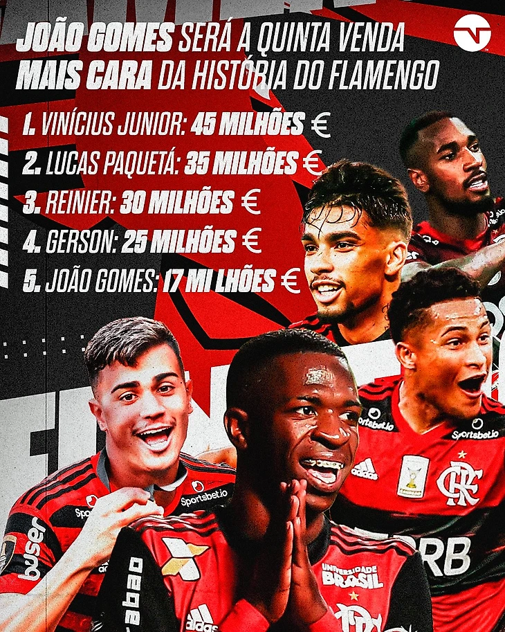 Закончилась сага с переходом Жоао Гомеса в "Вулверхэптон", он едет в Англию. Пытался влезть "Лион" и перебил предложение "волков", договорившись с Фла, но игрок отказался ехать во Францию. Трансфер Гомеса станет пятым по величине для Менго.