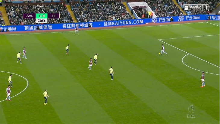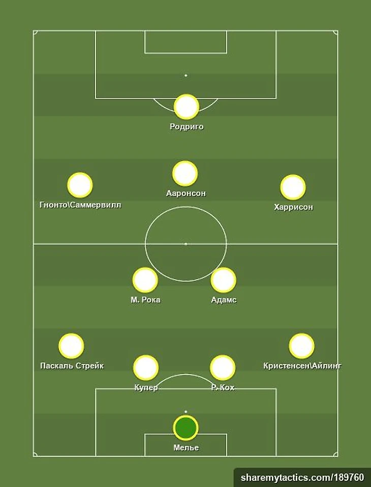 В случае сегодняшнего Лидса, команда атакует в классических 4-2-3-1. Где на первом этапе сохраняется структура, а когда мяч доходит до финальной трети, вингеры уходят во внутрь, а фулбеки поднимаются очень высоко, создавая ширину атаки.