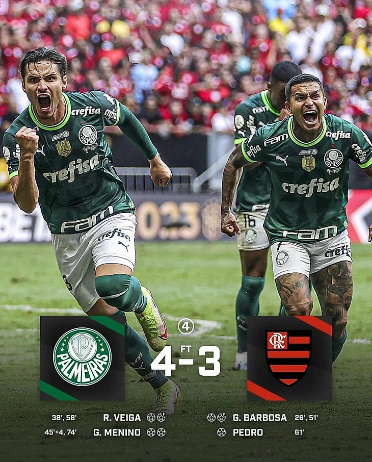 В добавленные 10 минут Менго не сподобился на что-нибудь вменяемое и острое. А Абел Феррейра в очередной раз изобразил цирк на бровке,за что и получил очередную красную карточку. Не скажу что его Палмейрас был сильнее,но этот парень из Португалии дико фартовый или продал душу Дьяволу в обмен на победы... Шучу.