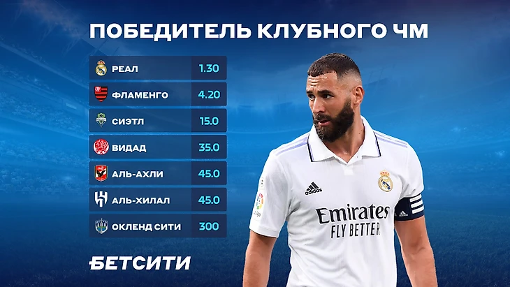1 февраля 2023 года в Марокко стартует клубный ЧМ по футболу. Главный фаворит турнира — мадридский «Реал». Аналитики букмекерской компании БЕТСИТИ оценили шансы всех семи команд выиграть титул.