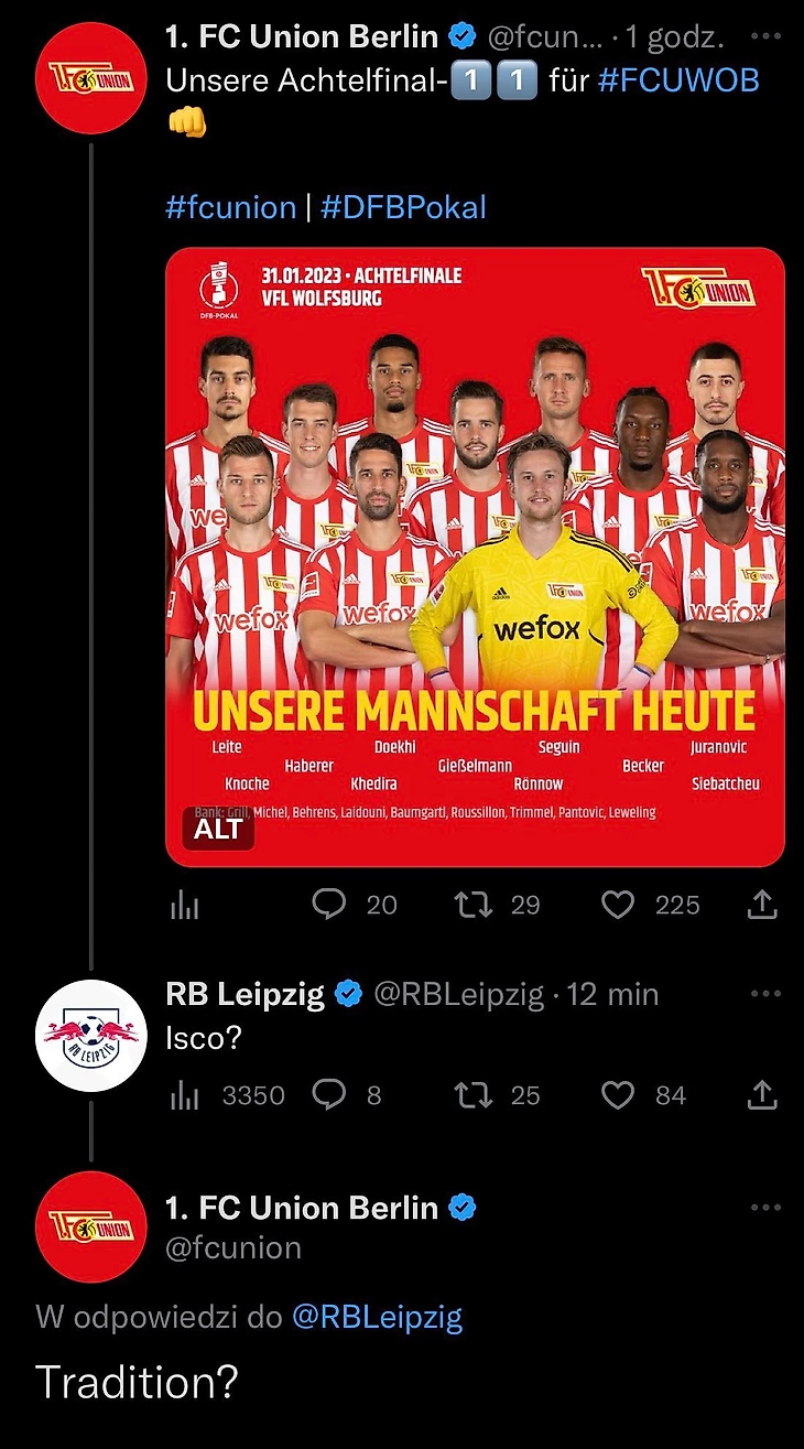 Другой клуб Бундеслиги, «РБ Лейпциг», решил потроллить «Унион» и влетел в их официальный твиттер с вопросом «Где Иско»?