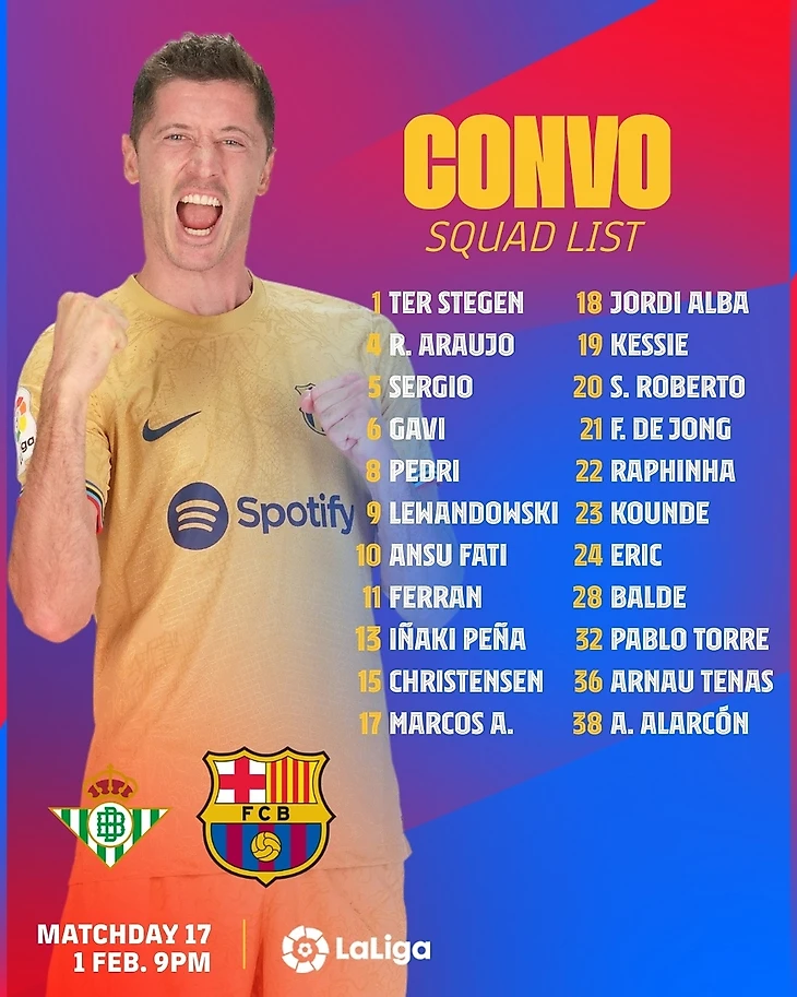 С Левандовски и Торресом. Заявка «Барселоны» на матч с «Бетисом»