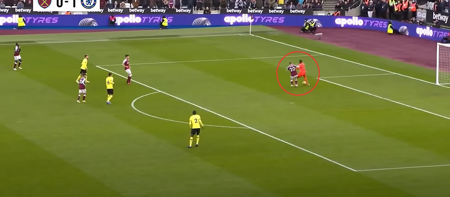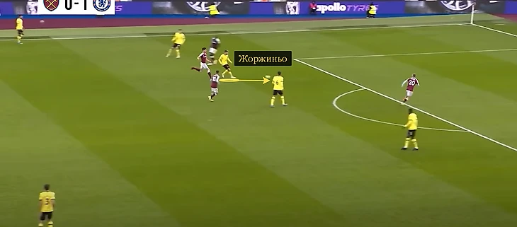 В памяти всплывают как минимум три примера. Первый – по выездному матчу с «Вест Хэмом», где «Челси» влетел впритык перед отъездом на Лигу чемпионов в Питер. Жоржиньо под давлением отпасовал на Эдуара Менди, которого запрессинговали и склонили к фолу под пенальти.