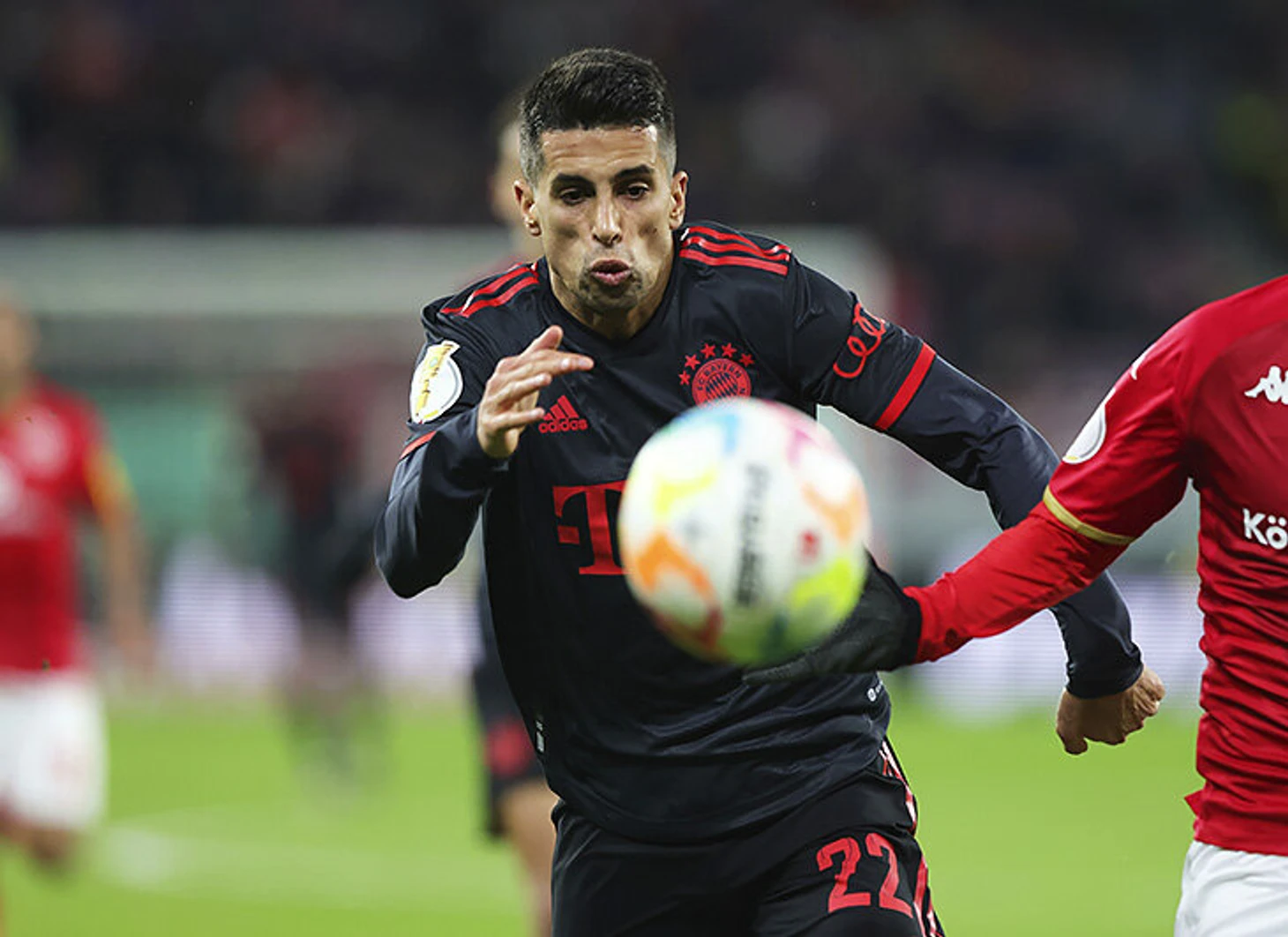 Но Канселу пригодится и как фланговый игрок. В дебютном матче за «Баварию» (4:0 против «Майнца» в 1/8-й Кубка Германии) Жоау действовал как правый латераль при трех центральных защитниках: закрывал всю бровку, создавал ширину, очень высоко поднимался, иногда пробовал забегать под заброс за спины из глубины (будто бы фланговый нападающий). И сделал первый ассист, вполне типичный для атакующего крайнего защитника: накрутил соперника на фланге и идеально подал на дальнюю штангу, Эрик-Максим Шупо-Мотинг замкнул навес.