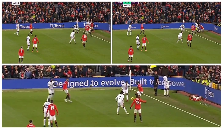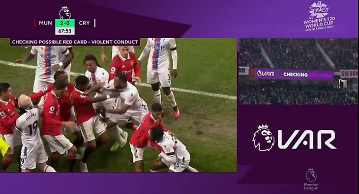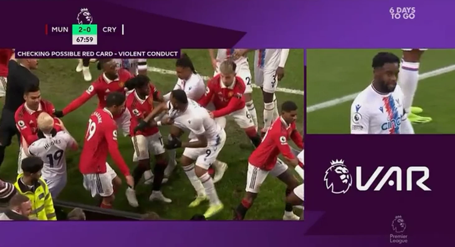 Сперва казалось, что Каземиро что-то сделал Шлуппу, но на повторе VAR стало очевидно, что в куче игроков обеих команд бразилец нашел рукой шею Уилла Хьюза. Судья посчитал это насильственным поведением и выдал хавбеку «красных дьяволов» прямую красную карточку.