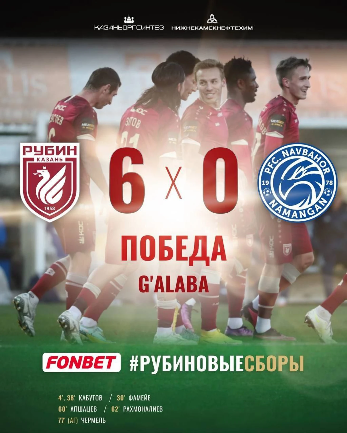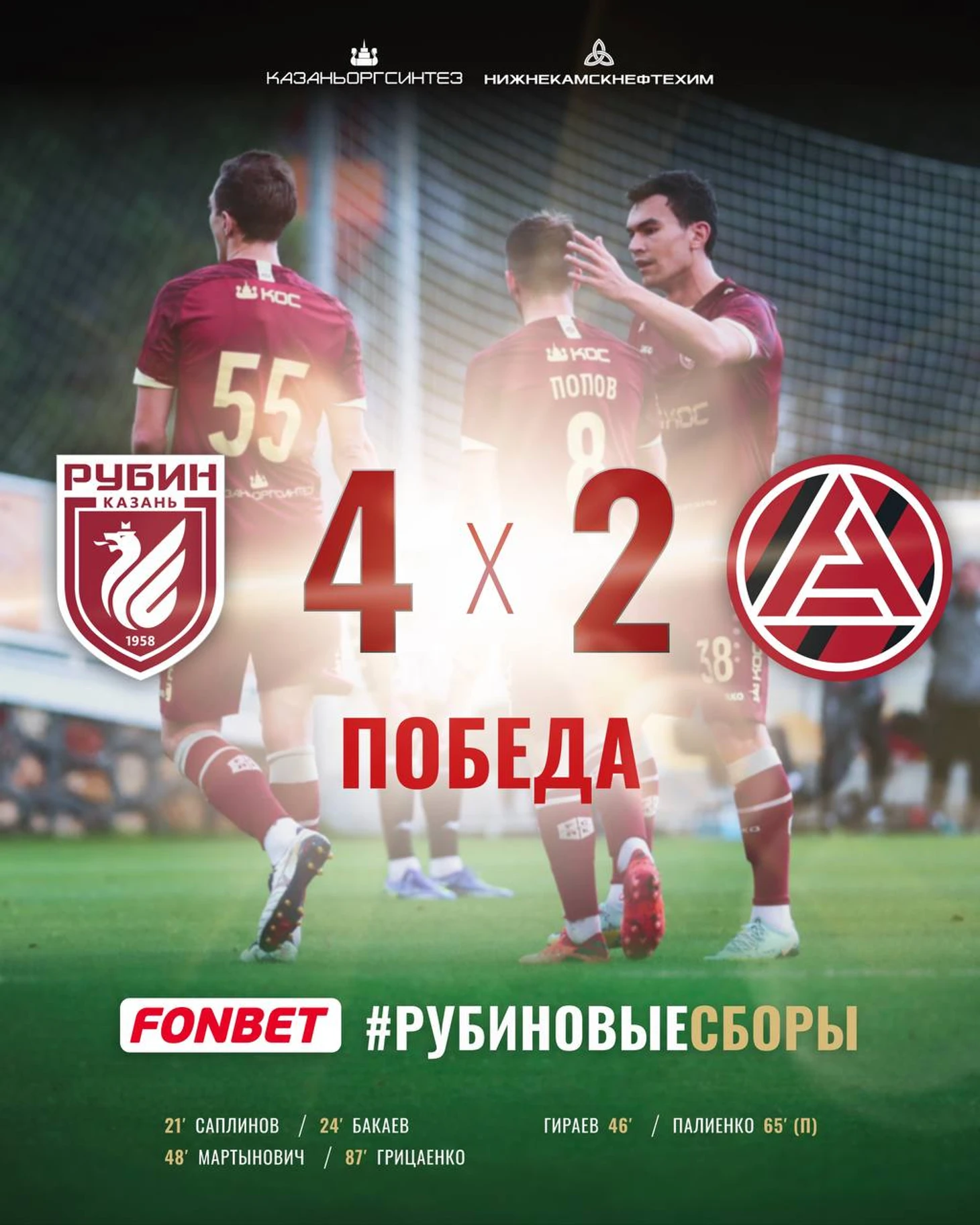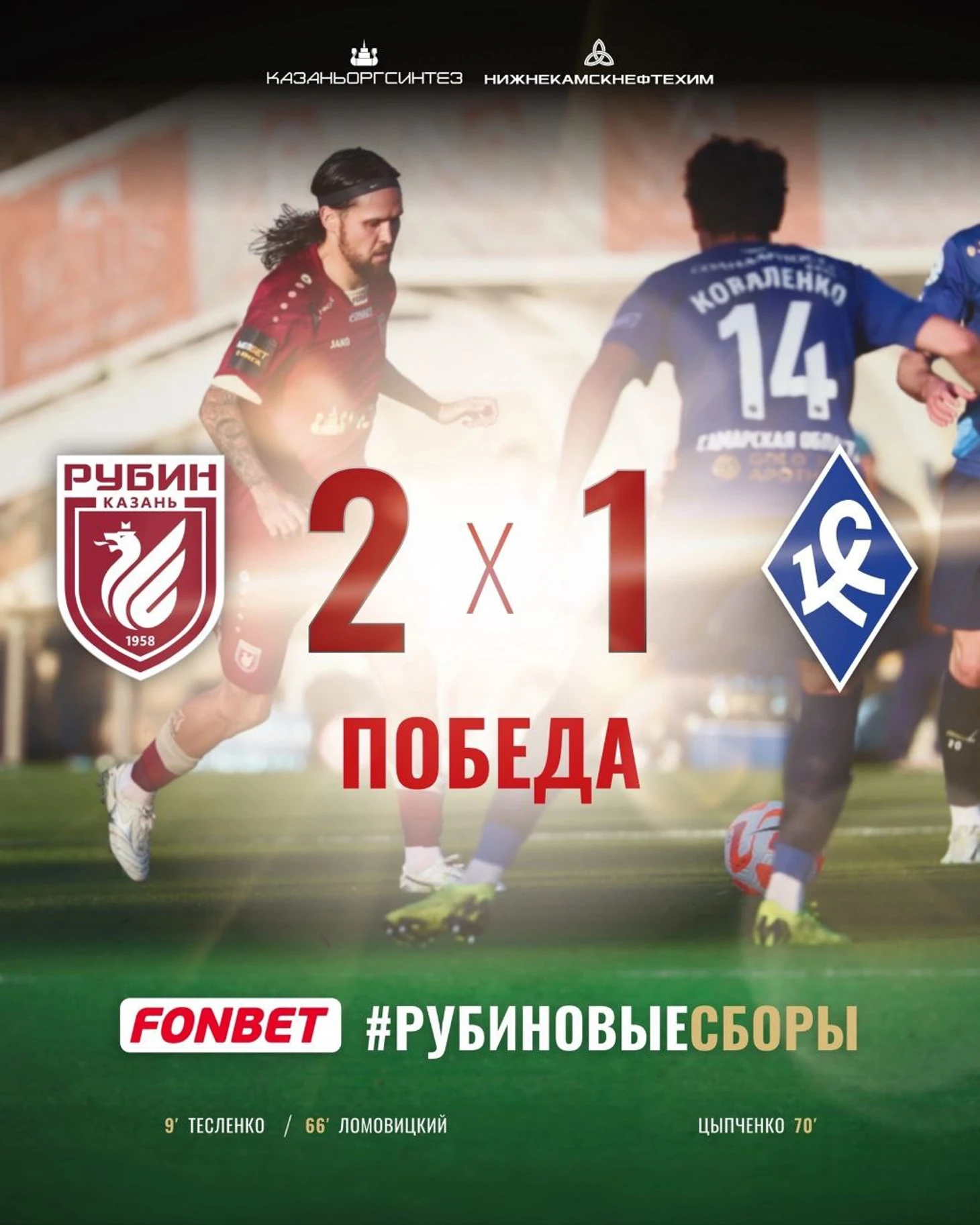 Сборы ещё не завершены, впереди Рубин ожидает еще 5 соперников, 2 из которых являются Цска и Ахмат. После ухода Леонида Слуцкого, команда выглядит очень спело и надежно, от чего кажется, что этот рубин остановить сможет только сам рубин, что показывает их серия из 7 побед подряд, над совершенно разными соперниками.