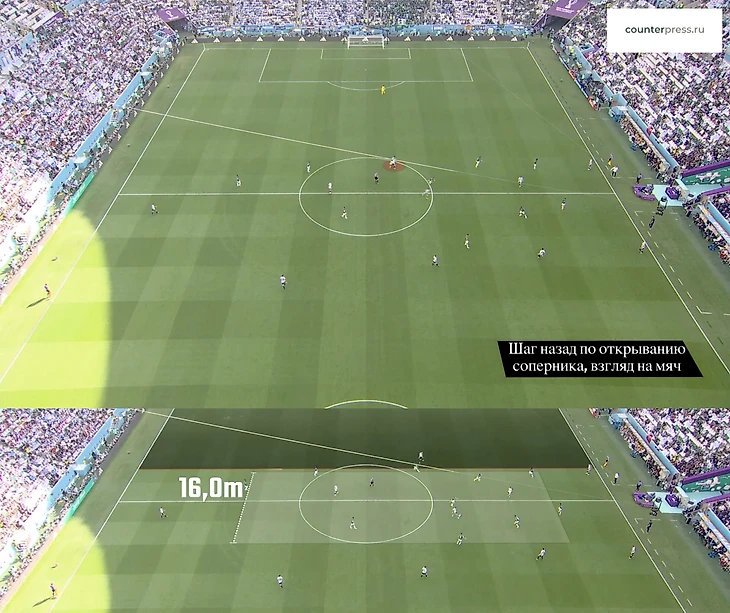 Периодически у защитников возникает своеобразный психологический эффект: «лучше на всякий случай сделаю уступ, чтобы не пустить за спину». Это довольно вредная привычка, от которой трудно избавляться.