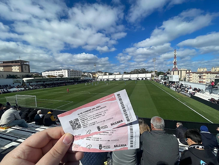 Несмотря на раннее время матча и тяжелое турнирное положение «Сеуты», собралось около трех тысяч. Кстати, не бесплатно: билеты по 15 и 20 евро. Мы взяли подешевле и пошли за ворота.