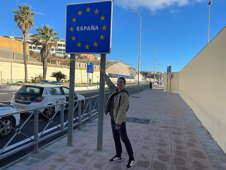Наша обратная дорога в Марокко была уже чуть дольше из-за очередей на границе. В общей сложности мы провели в транзитной зоне около 50 минут. В целом, переход между странами пешком очень сильно напомнил границу России и Эстонии, где мост дружбы соединяет Ивангород и Нарву.