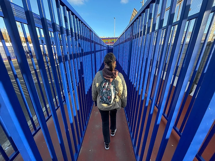 В 9:30 по местному времени мы уже были на границе: указатели привели нас в узкий коридор, по нему мы прошли к марокканскому пограничнику.