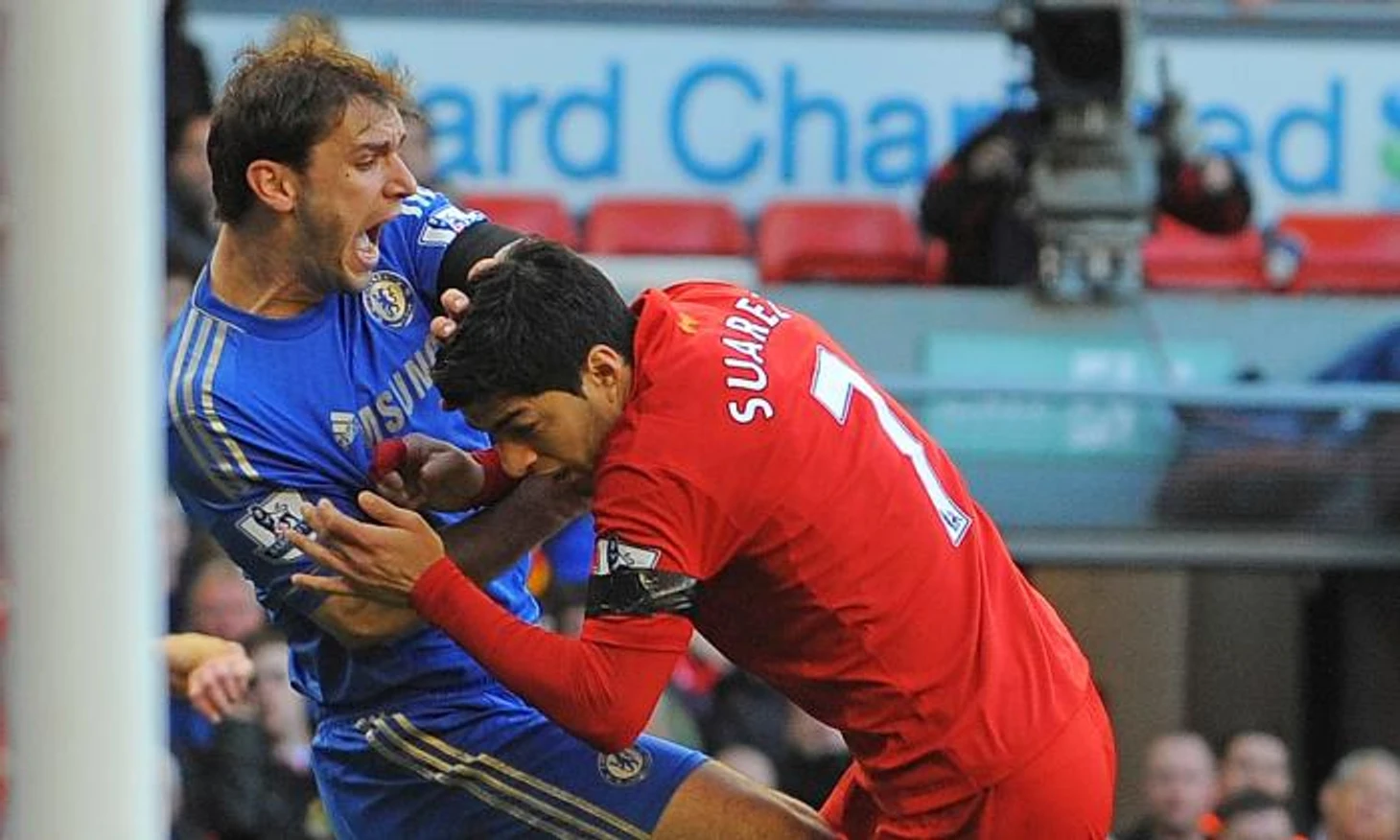 Укус №2 случился в 2013 году, во время встречи с «Челси». Тогда нападающий вцепился в защитника Бранислава Ивановича, за что его отстранили уже на 10 матчей. А третий укус уже был в составе сборной на ЧМ в Бразилии. Новая жертва – Джорджо Кьеллини, на которого побоялись бы даже пикнуть 99% футболистов. Наказание ФИФА было жестким – запрет на любую деятельность, связанную с футболом на четыре месяца. Ему нельзя было даже появляться на стадионах.