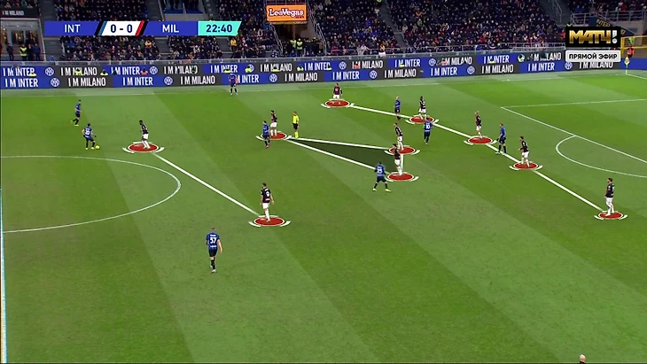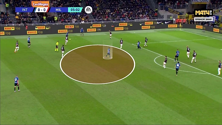 На фоне хаотичных реакций «Милана» у «Интера» всегда был свободный игрок (или несколько). Часто не только в первой стадии, но и на чужой трети. Команда Индзаги достаточно хорошо двигала мяч, чтобы регулярно находить этого игрока.