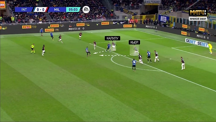 В рамках этого общего подхода «Интер» по-разному атаковал фланги. Для угрозы справа пытались резко переводить мяч – изолировать Тео на пространстве против двух оппонентов: