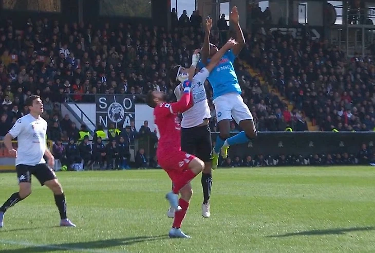 Вчерашний прыжок Осимхена в момент второго гола – 2,58 метра в верхней точке.