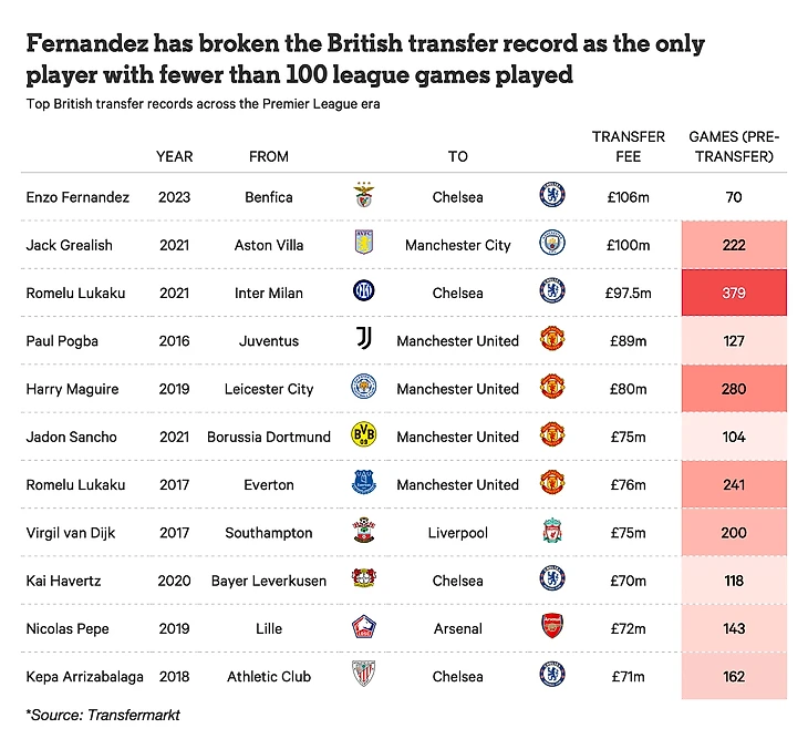 Это не так. 22-летний Энцо переезжает на «Стэмфорд Бридж», имея в своем послужном списке лишь 17 матчей в чемпионате Португалии за «Бенфику», в которую он пришел прошлым летом всего за 14 млн евро.