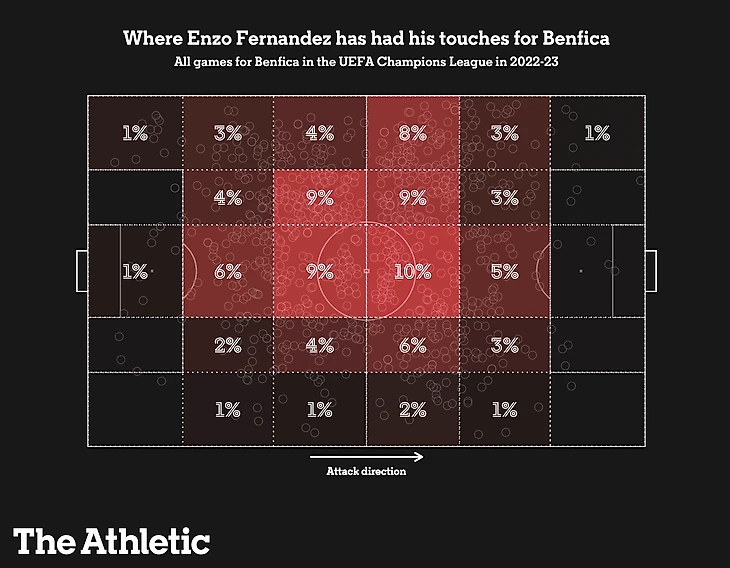 Несмотря на подобные прямые угрозы воротам соперника, в первую очередь вклад в атаку своей команды Энцо привносит на фазе билдапа.