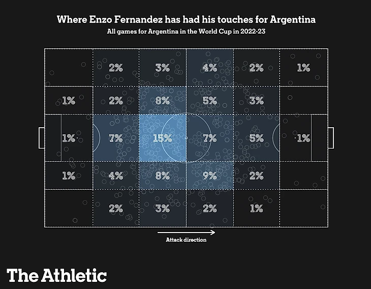 Схемы менялись, но в полузащите царила стабильность: обычно Энцо играл в оттяжке в треугольнике, где перед ним были Алексис Мак Аллистер и Родриго Де Пауль.