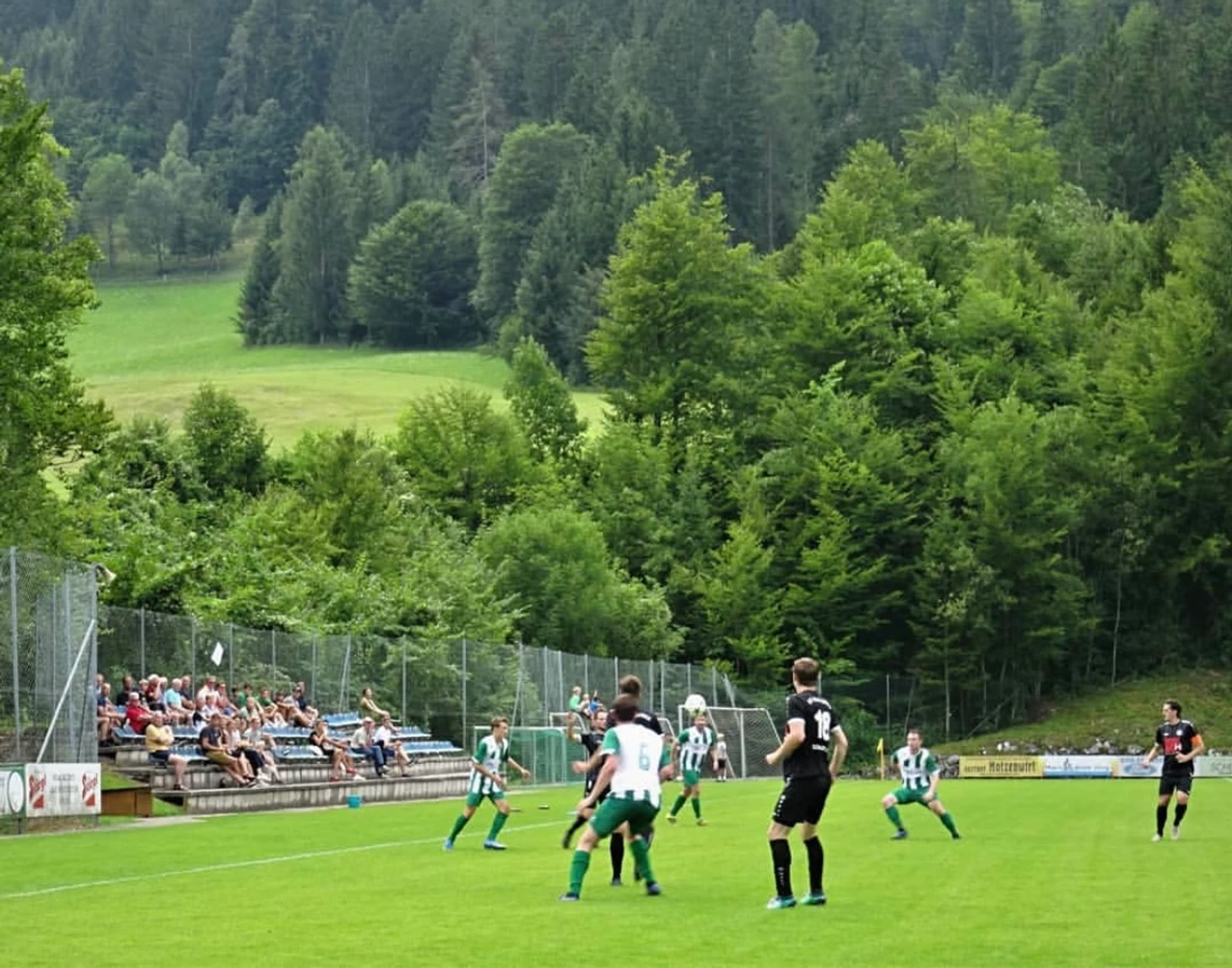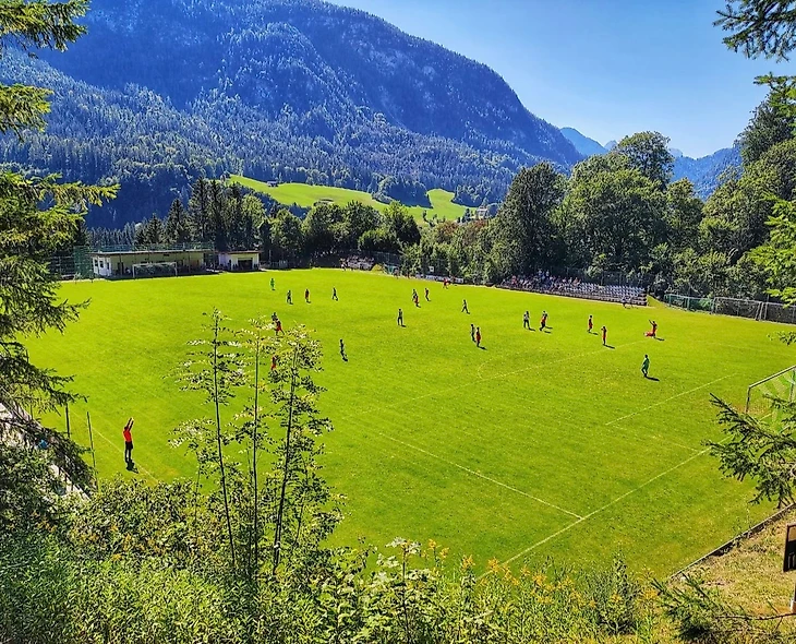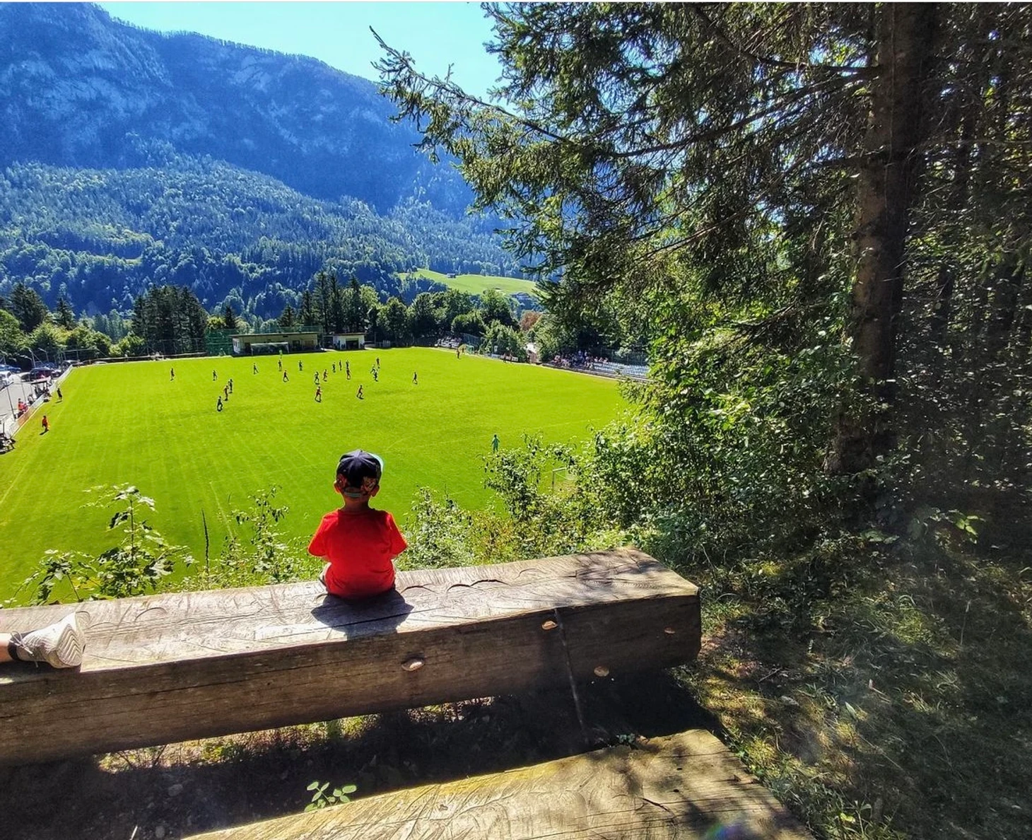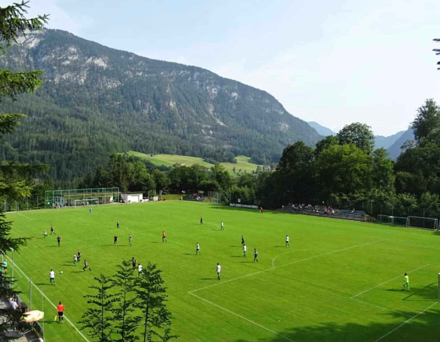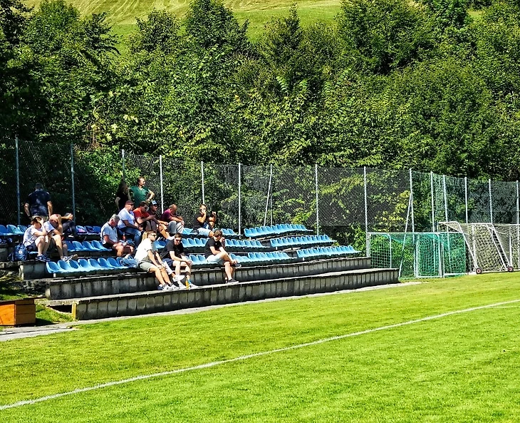 Поляна в этих местах – шикардос! Горы, лес, чистейший альпийский воздух. Если вдруг соберетесь в эти края, то помните: вход на матчи не бесплатный, а стоит 5 евро.
