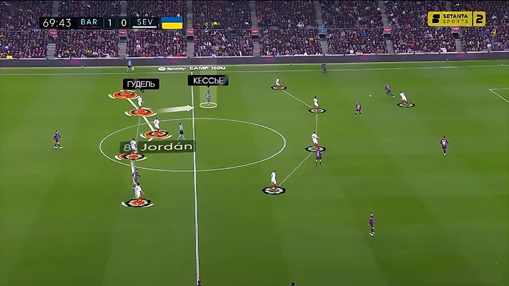 А в прессинге (очень эпизодическом) «Севилья» плотно играла не только по де Йонгу, но и Кессье: