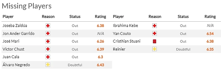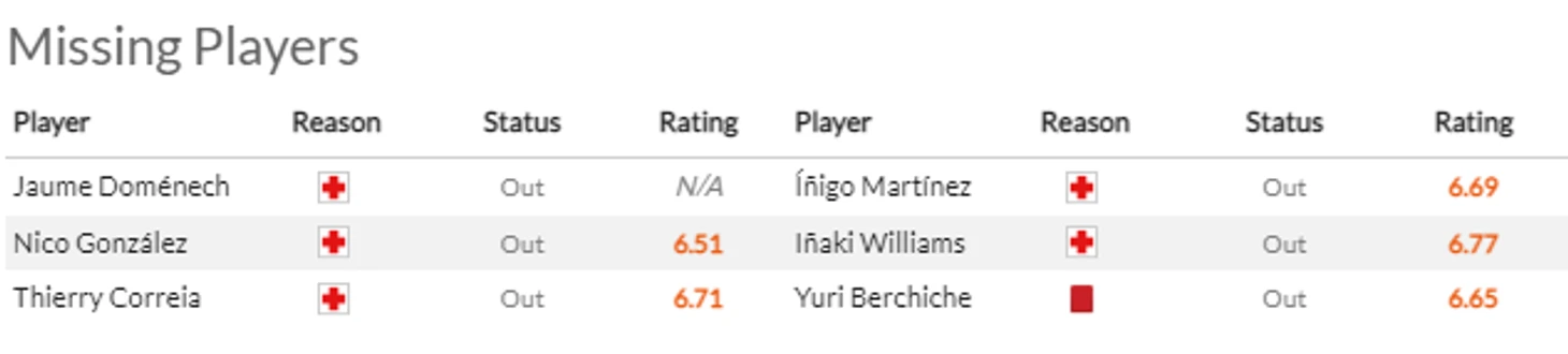 Пока не ясно успеет ли Диего Алвес набрать кондиции к матчу против Атлетико, но эту игру точно пропустит перебравший карточек Унай Нуньес(5).