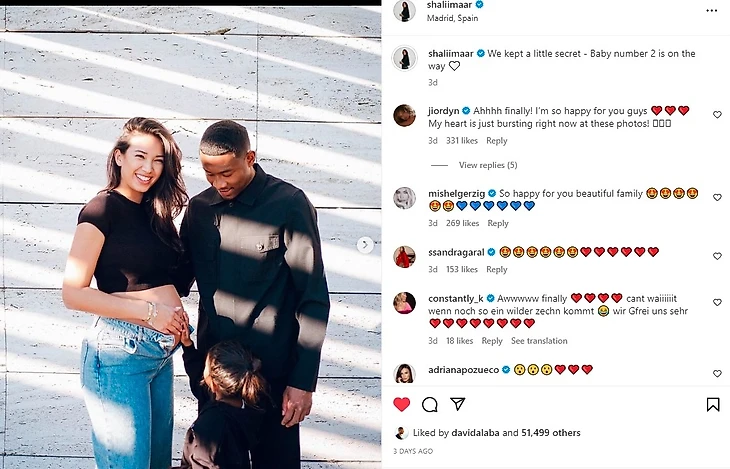 Родители не показывают лица своего первенца, а в своем профиле Шалимар называет себя «мамой маленького Z».
