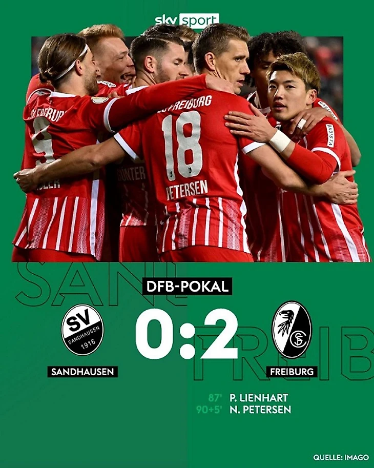 «Жаркая битва в Зандхаузене» – так назовут этот матч на официальном сайте «Фрайбурга». Сложно не согласиться. Долгое время «Зандхаузен», без колебаний отдавший мяч под контроль соперника, вполне уверенно удерживал ничью. А потом случилась яркая развязка. На 83-й минуте Грифо подал угловой, который увенчался автоголом экс-форварда «Штутгарта» Аль-Гаддиуи. Хозяева не сдались и даже чуть было не сравняли счёт в компенсированное время… Но вслед за нереализованным Кинсомби моментом в дело включился «джокер» Петерсен, чей точный удар поставил точку в этом матче. «Фрайбург» одерживает непростую победу и выходит в четвертьфинал.