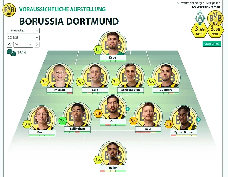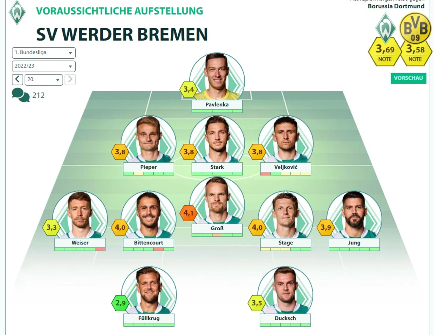 Марко Ройс забил больше голов в Бундеслиге против «Вердера» (14), чем против любого другого клуба.