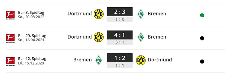 Победа «Вердера» со счетом 3:2 в Дортмунде в третьем туре стала первым случаем в истории Бундеслиги, когда команда, отставшая на два гола на 89-й минуте, выиграла игру.
