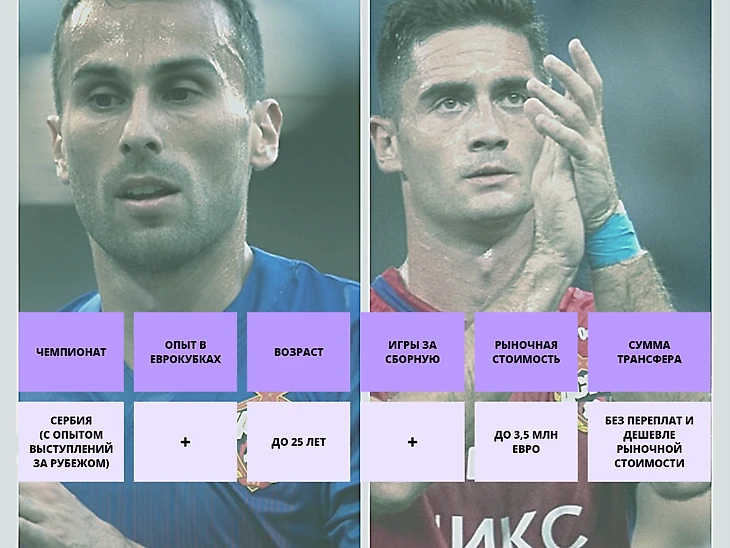 Для анализа были взяты трансферы Милана Гайича и Саши Сделара (сезон 22/23). Обоих сербов отличает то, что они приехали в Россию из местного чемпионата, при этом имеют опыт выступления за рубежом: Гайич сыграл 40 матчей за французский «Бордо», Сделар же выступал за греческий «Олимпиакос» и испанскую «Мальорку» до возвращения в «Партизан». Это будет важным факторов при поиске игроков. Плюс дополнительно будем считать опыт легионеров в еврокубках и выступления за свою сборную (хоть и в малом количестве), у Сделара 3 матча, у Гайича всего 1 до прихода в ЦСКА. Но в этой категории чем больше, тем лучше.