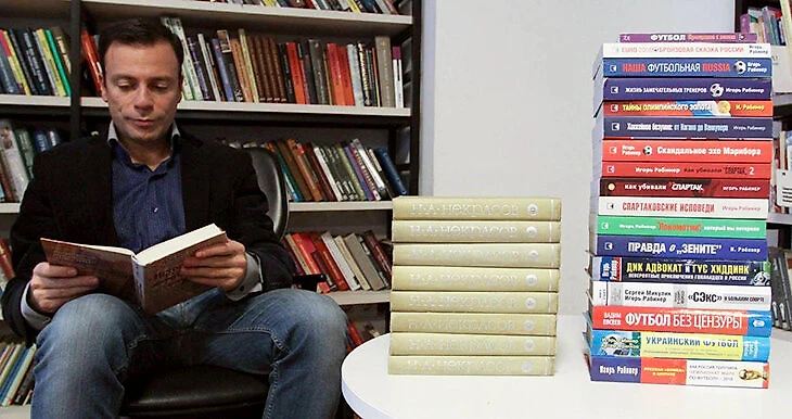 Я, немного смущаясь, подошел с этим предложением к Рабинеру на одном из матчей «Спартака». Вполне допускал, что он откажет, но Игорь очень оживился. Чуть ли не на следующий день мы организовали съемку в библиотеке на Чистых прудах. Рабинер притащил туда 18 книг.