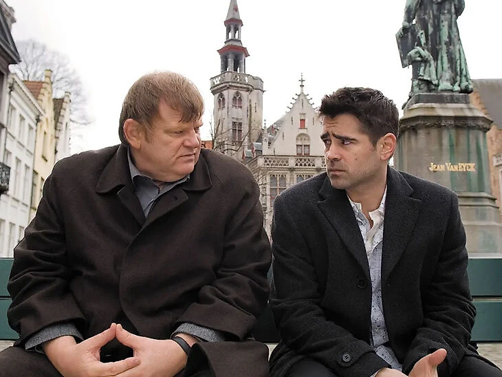Завязка фильма не сильно впечатляет: два киллера пережидают в прохладном Брюгге после неудачного убийства. Они ведут себя, как туристы. Опытному киллеру (Брендан Глисон) нравится старый европейских дух и архитектура, а молодой киллер (Колин Фаррел) ежится от холода и плюется в Брюгге словом «дыра».