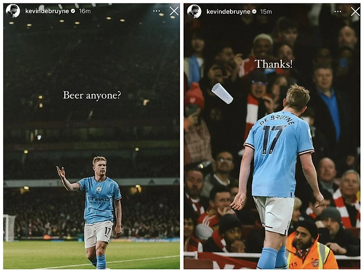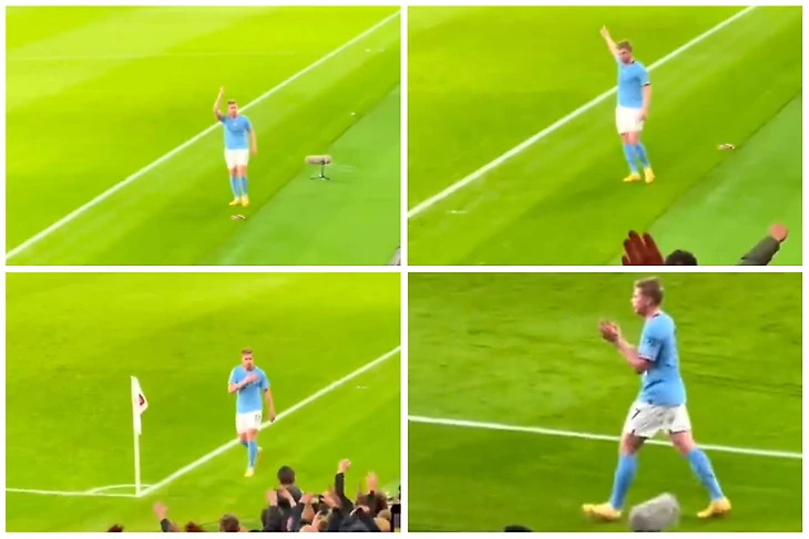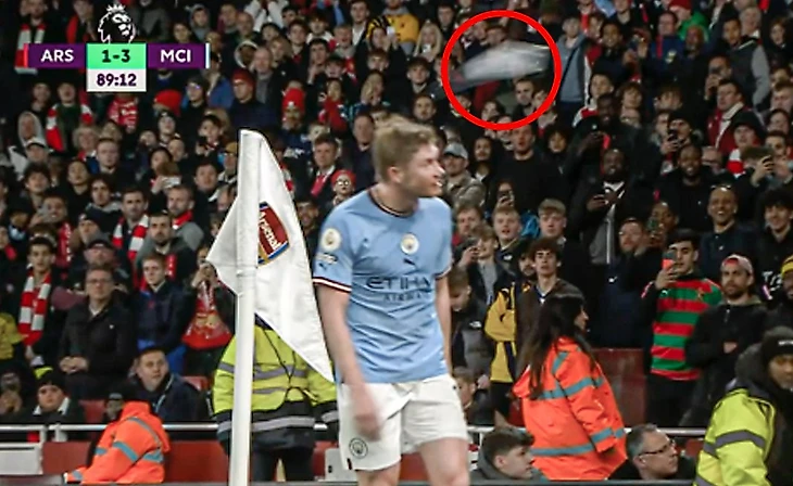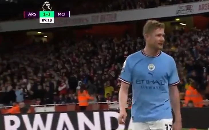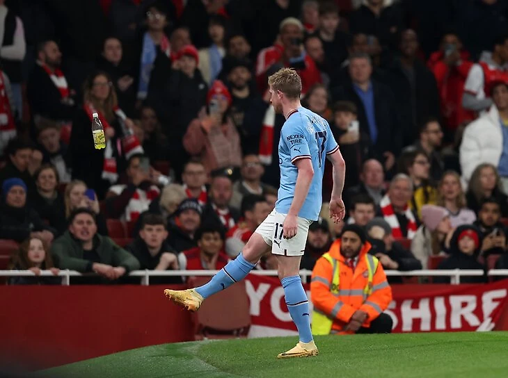 Другой момент возник в самом конце, когда Де Брюйне заменили на Кэлвина Филлипса. Кевин проходил мимо трибуны с фанатами «Арсенала» и увернулся от бутылки, которая в него полетела.