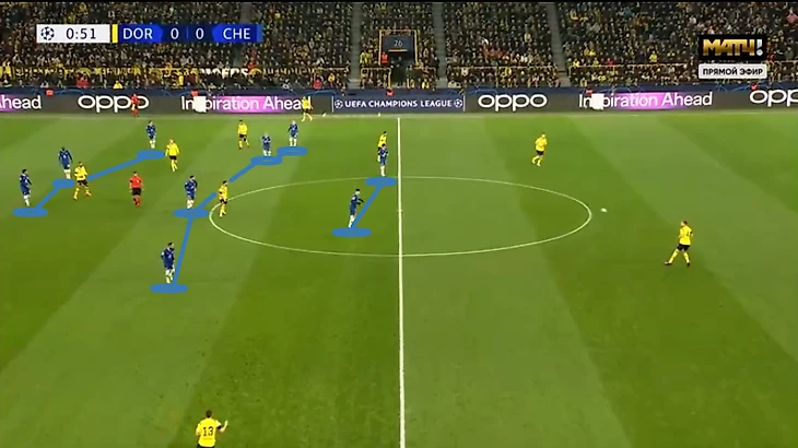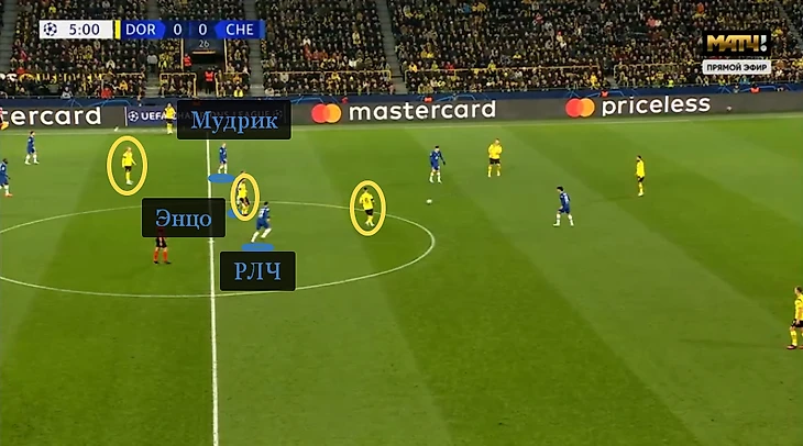 Задачей Энцо и Лофтус-Чика оказалась приманка соперника в прессинг. Как только «Боруссия» отступала от позиционной структуры, «Челси» продвигал мяч. На 22-й минуте к Фернандесу бросился Джан – аргентинец тут же бросил пас на Феликса.
