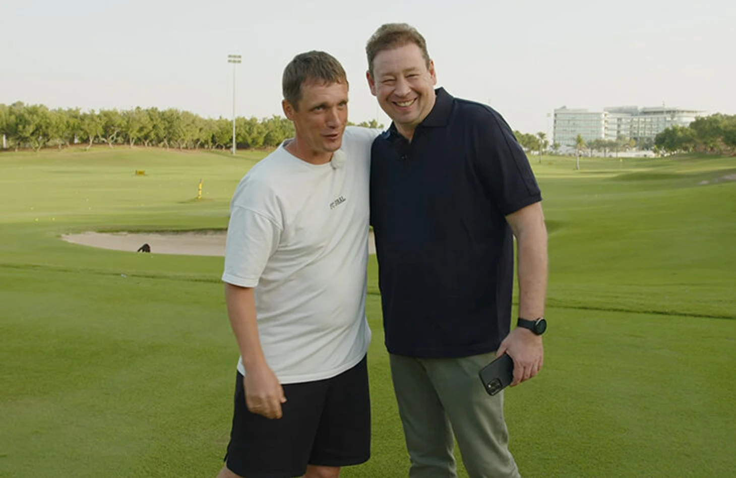 Леонид Слуцкий осваивается в роли интервьюера в шоу «Коммент.Тренер», герой второго выпуска – главный тренер «Урала» Виктор Гончаренко.