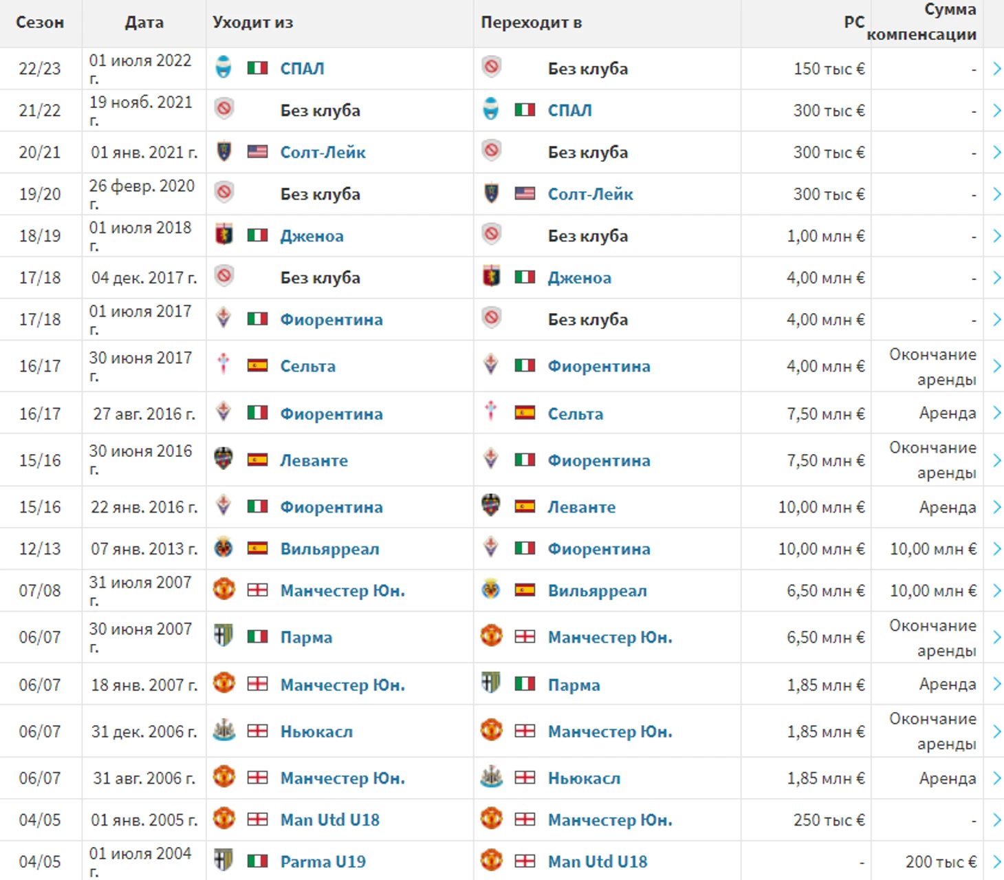 Сейчас итальянцу 36 лет и в прошлой кампании за «СПАЛ» в Серии Б он выходил 14 раз и забил 3 гола. После окончания сезона форвард покинул команду.