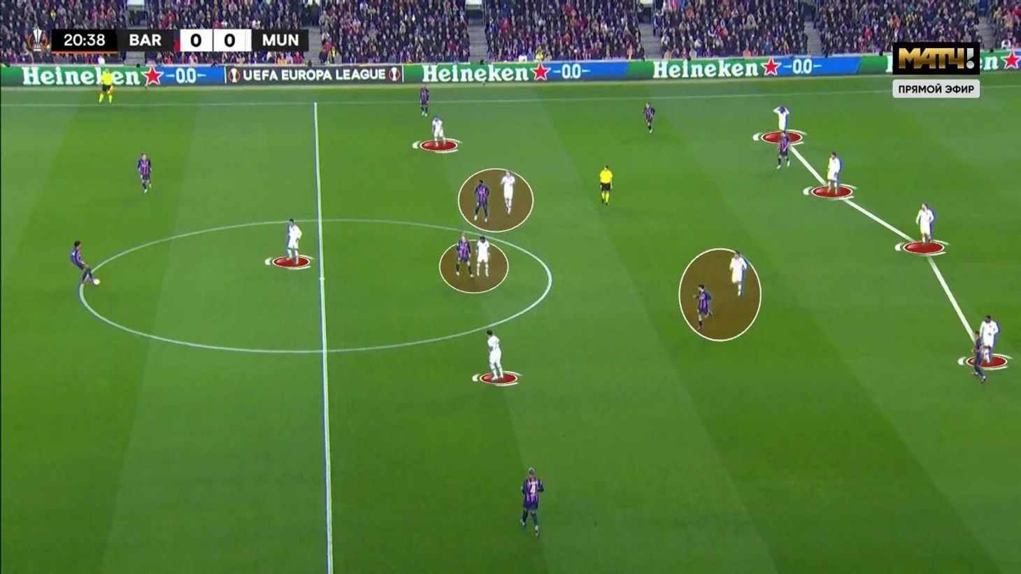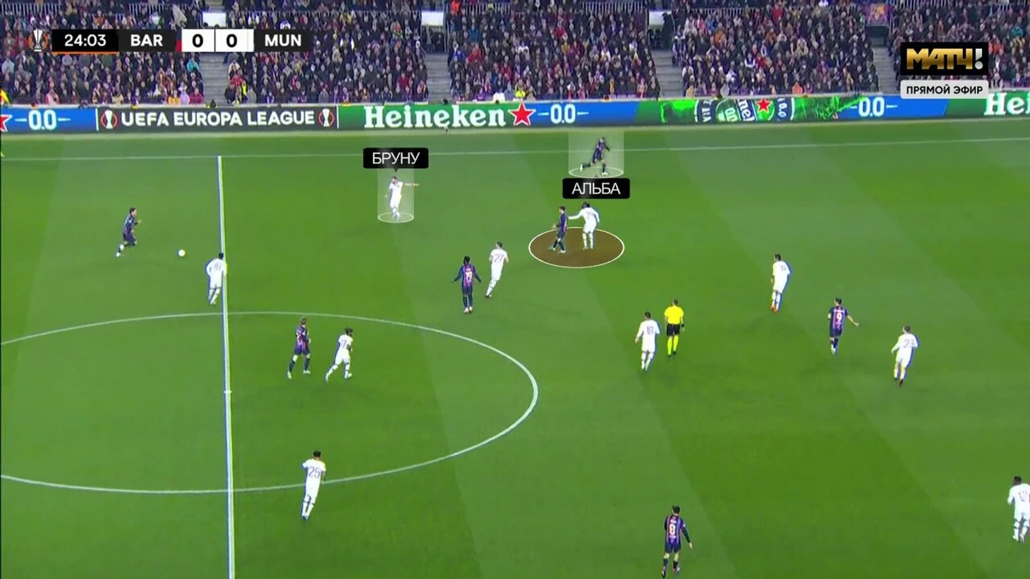 • обязанности Уан-Биссаки по Гави. Аарон мог бы активнее помогать Бруну, но часто Гави уводил его ближе к центральной зоне, что давало Альбе еще больше простора;