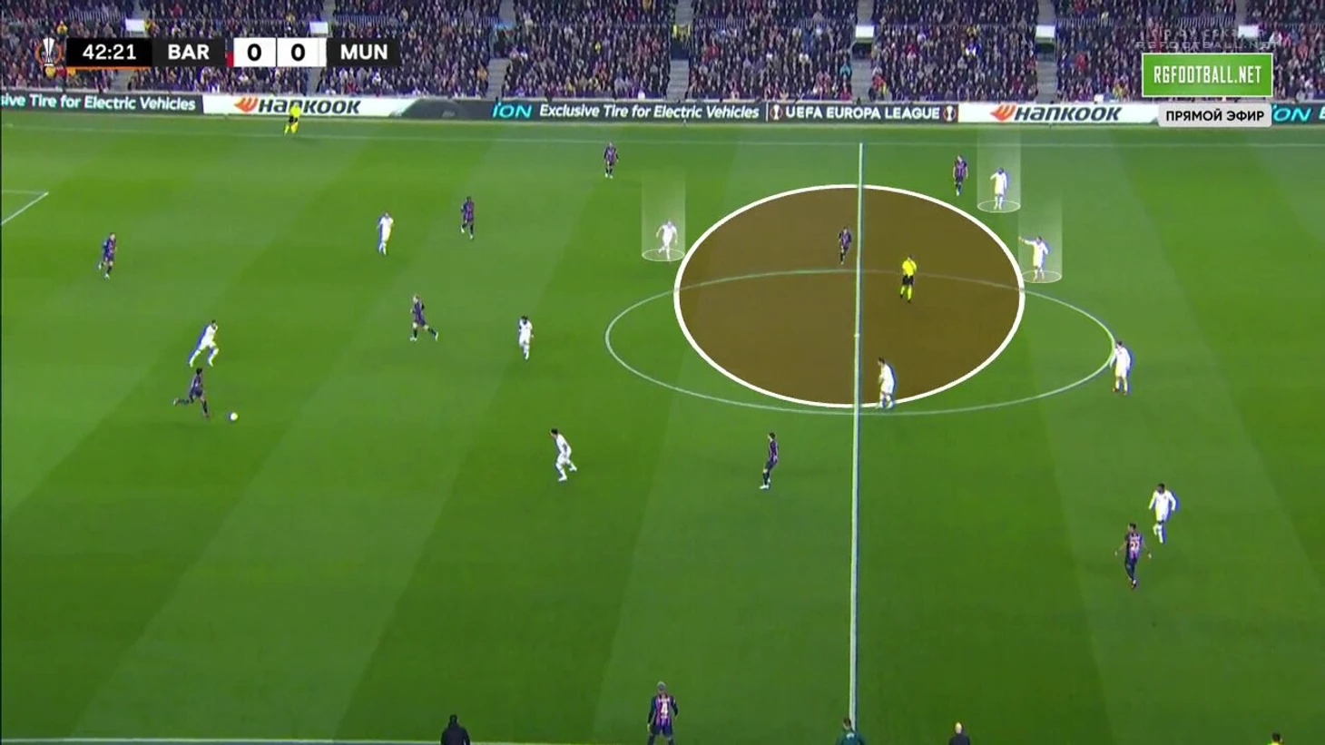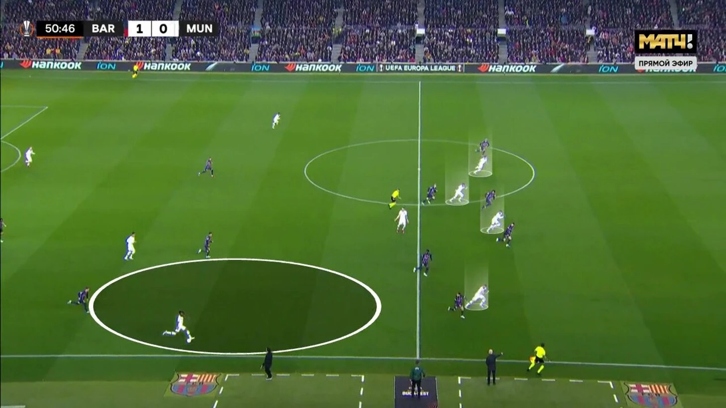 Голландский тренер посчитал плотную опеку эффективным способом сдерживания «Барсы» в этой зоне и наполнил ее игроками, которые способны дать нужный объем. Аналогичный план с индивидуальными недоработками привел бы к катастрофе. От Фреда и Каземиро такого объема разумно ожидать.