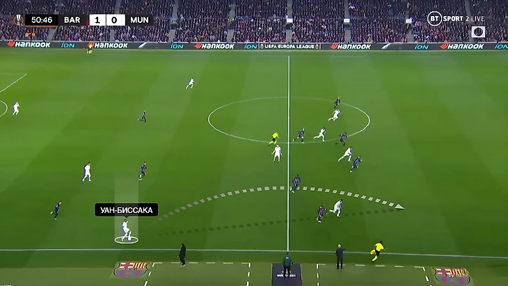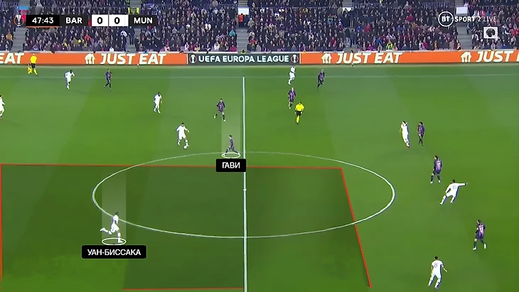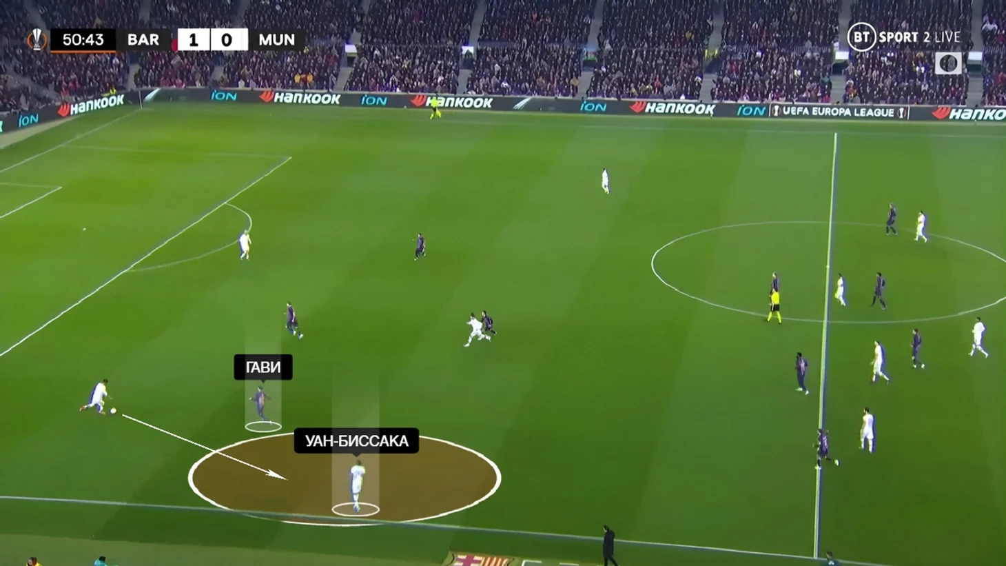 У «манкунианцев» была лазейка, которая заключалась в позиции Гави после потери мяча – он задерживался в центре, и на фланге Уан-Биссаки появлялось больше пространства: