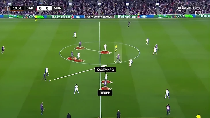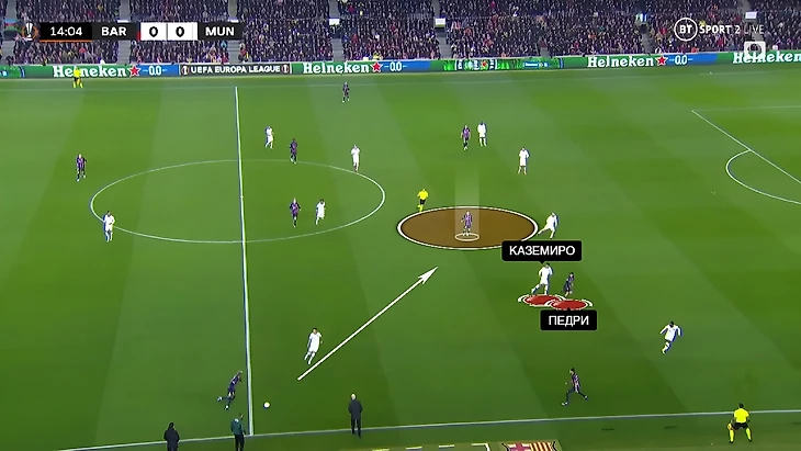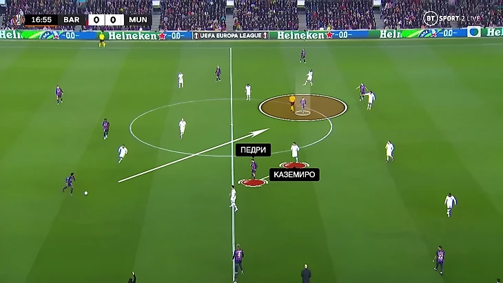 Таким образом, кстати, «Барселона» не один раз находила свободного Гави в центре поля – как раз за счёт того, что Педри уводил Каземиро в неудобные зоны: