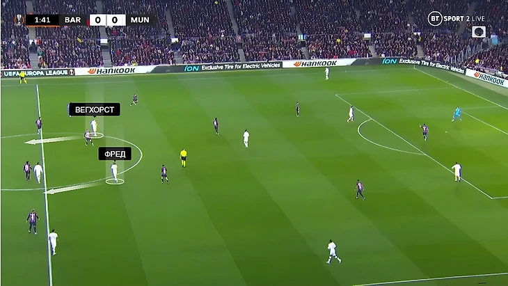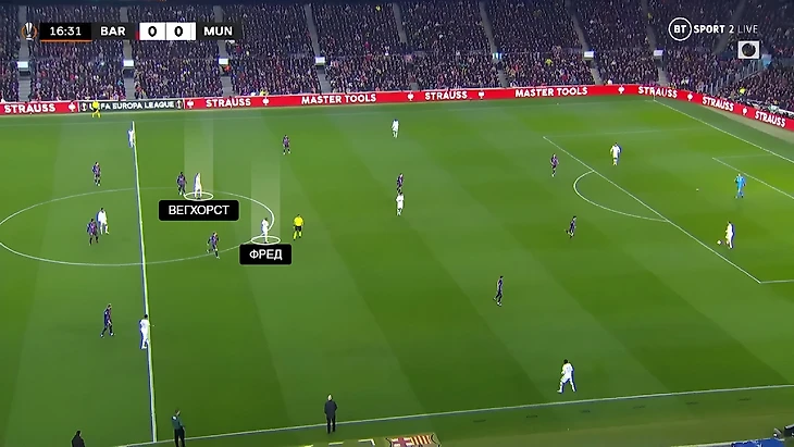 Фред и Вегхорст (иногда Бруну) всякий раз, когда мяч переходил под контроль «красных дьяволов», делали рывки за спину последней линии: