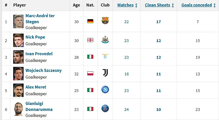 Ник Поуп, представляющий «Ньюкасл», провел 12 «сухих» матчей в АПЛ – на пять меньше, чем вратарь «Барсы».